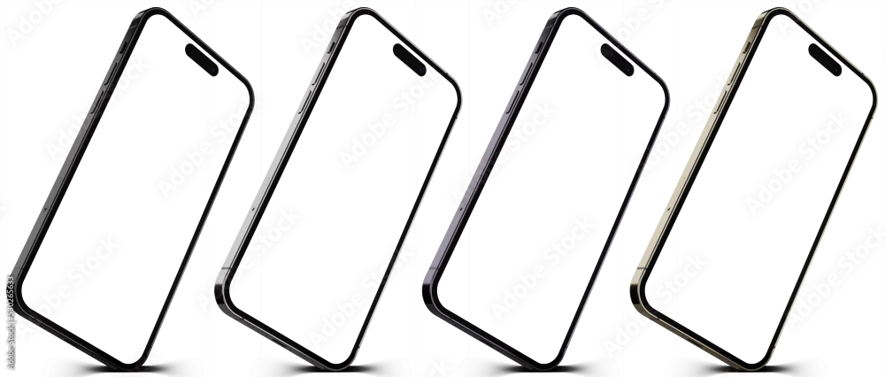 iPhone 14 Pro with blank transparent screen and background, standing on corner, little transparent shadow included - PNG format, easy replacement of screen ...