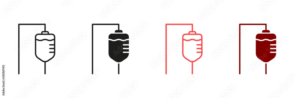 Iv Drip Line and Silhouette Icon Set. Medicine Treatment, Injection Black and Color Sign. Infusion Medication Aid Symbol Collection. Infusion Medical Bag ...