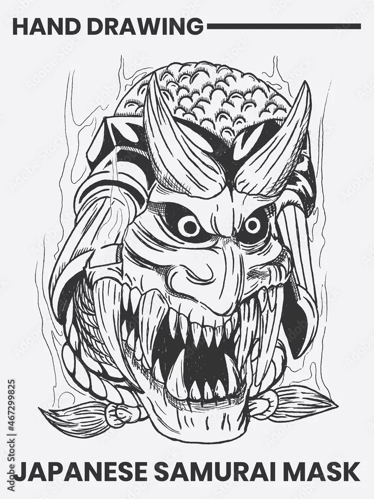 Japanese style oni samurai mask tattoo design