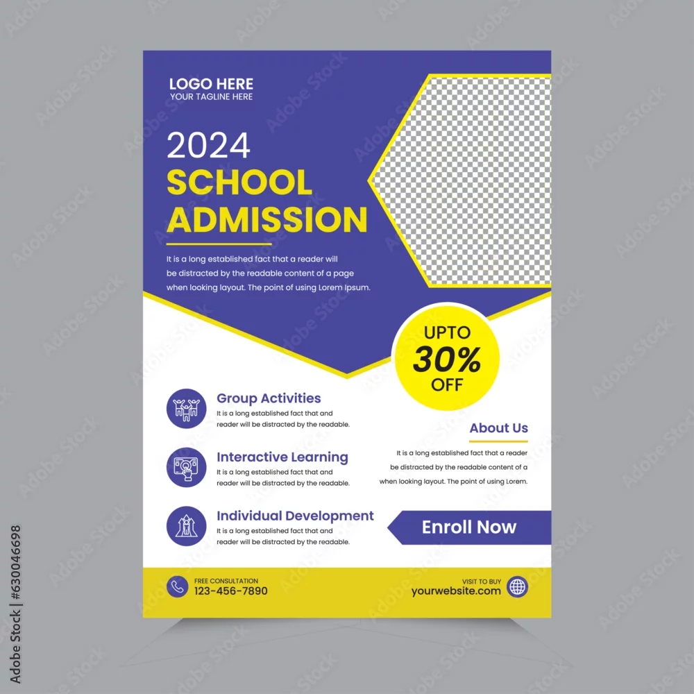Kids Back to School educational admission flyer. School Admission Flyer Template, Education Flyer, Poster Design, and leaflet design with the print-ready ...