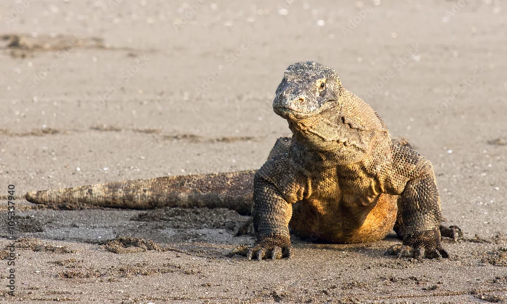 Komodo dragon, famous reptile lizard species. The habitat on Komodo and Rincha Island.