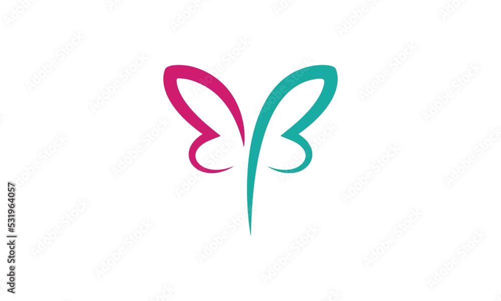 letter B Colorful butterfly line art logo. Overlay transparent sheets style.