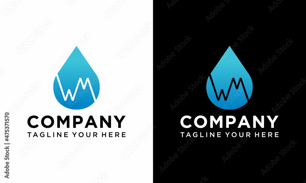Letter WM water drop logo. Blue aqua logo design vector template. on a black and white background.