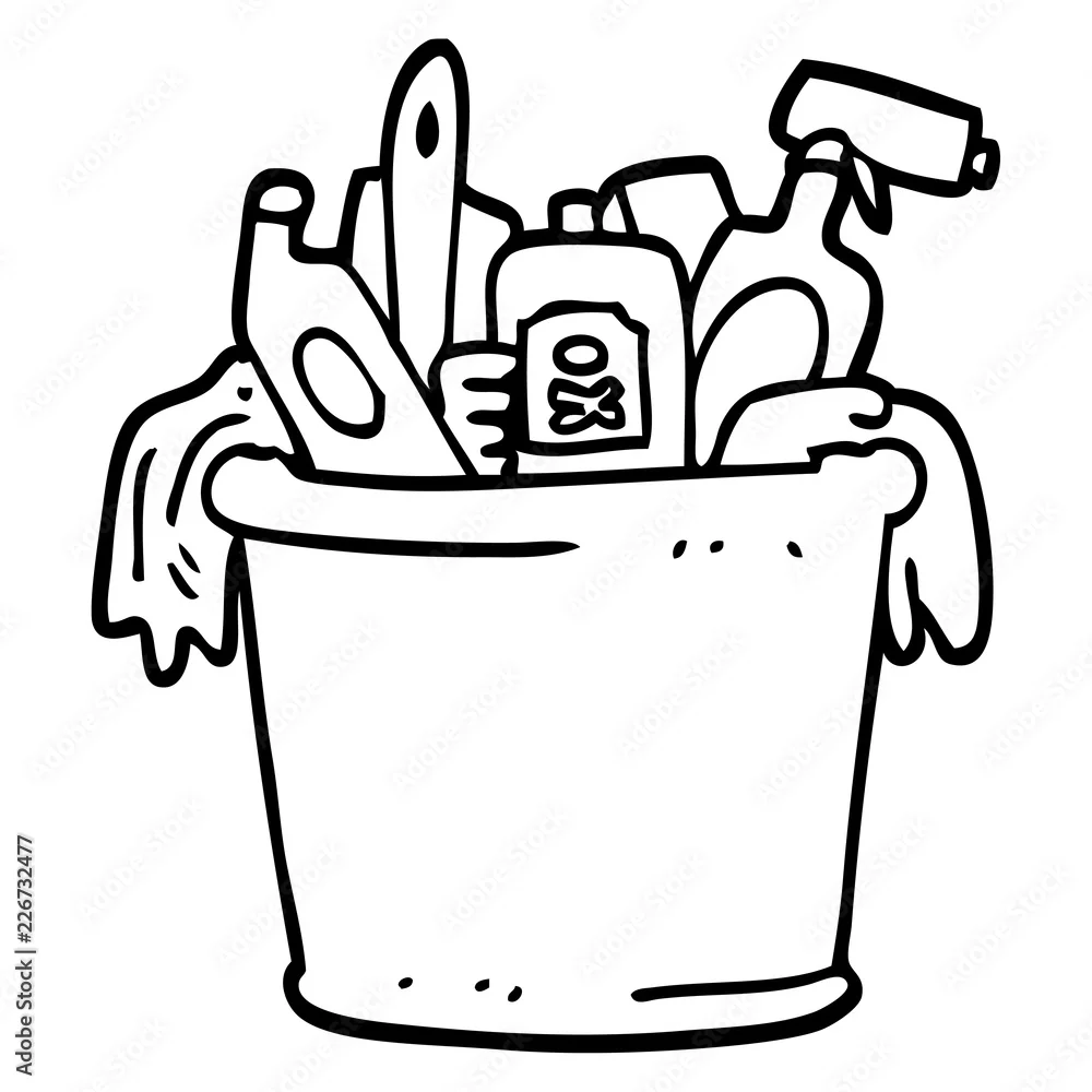 line drawing cartoon house cleaning products