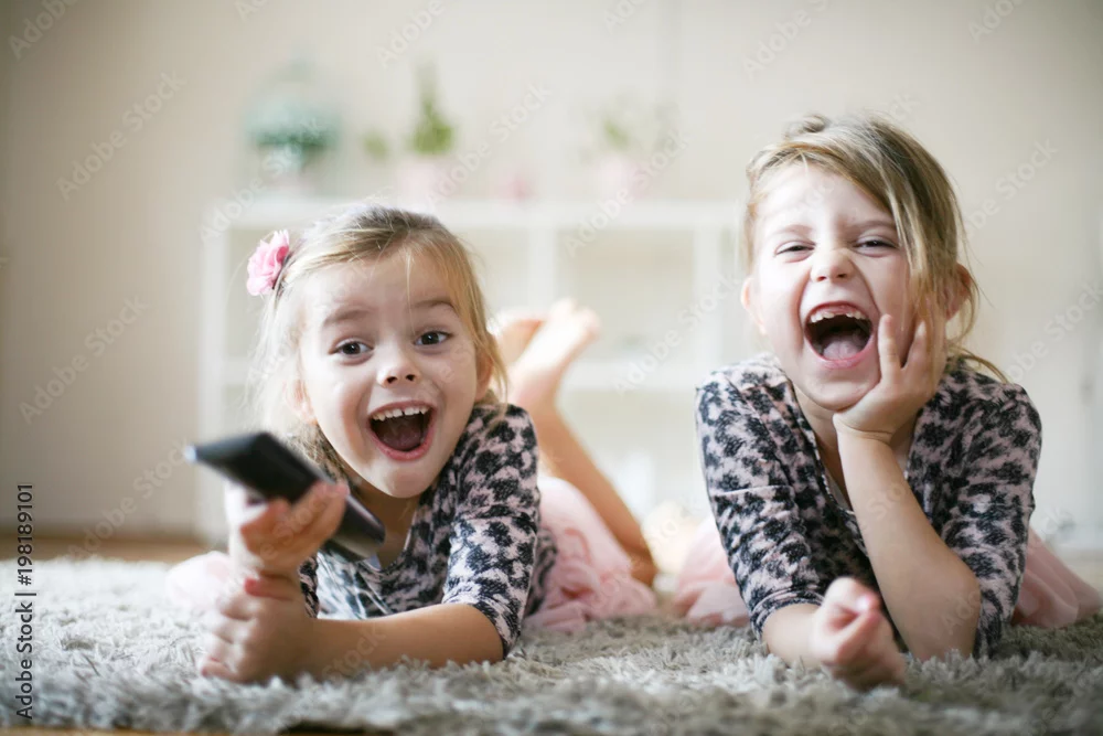 Little girls with remote at home.