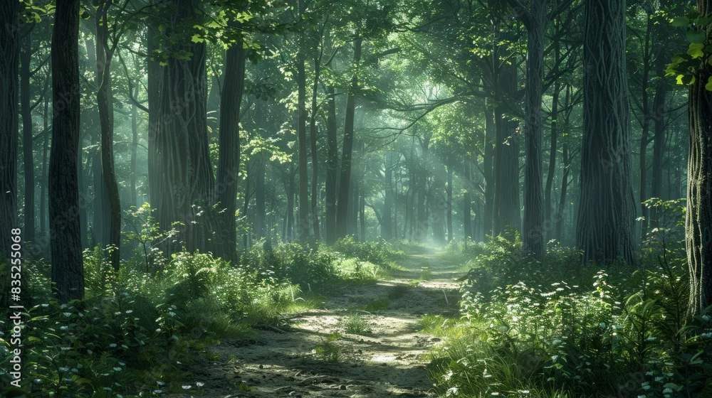 Lush Forest Path: Capture the serenity of a lush forest path with towering trees, dappled sunlight, and a winding trail, perfect for nature blogs