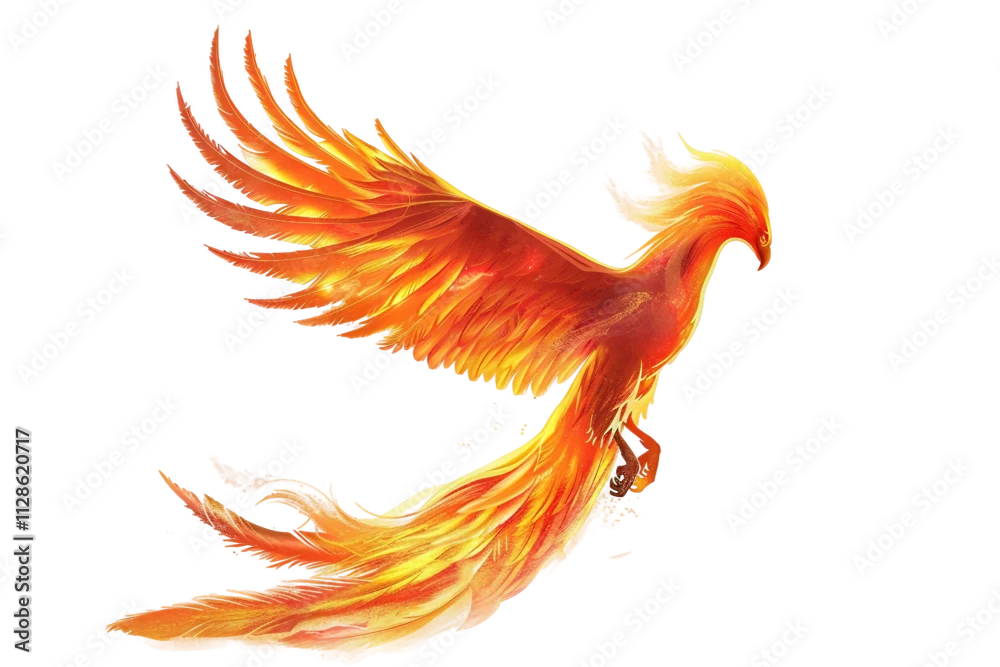 Majestic glowing phoenix bird soaring with vibrant light effects isolated on transparent background