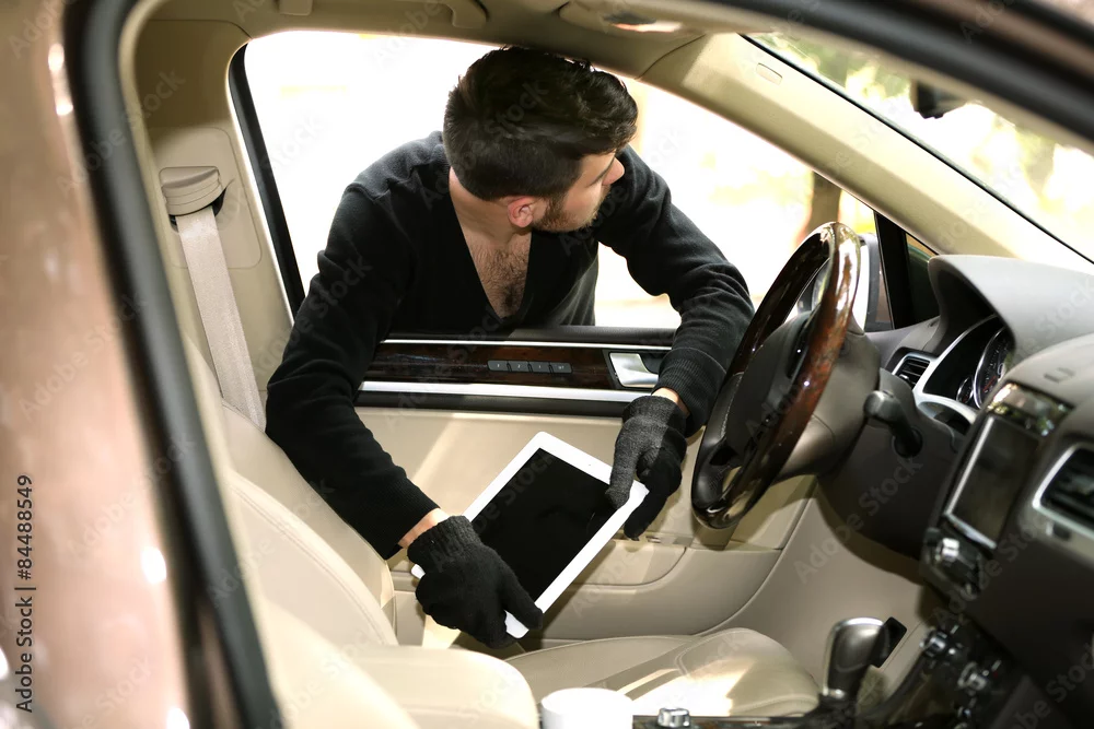 Man burglar steals the tablet of car