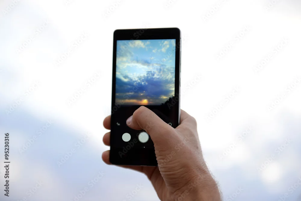 Man using smart phone for taking photo of beautiful sky