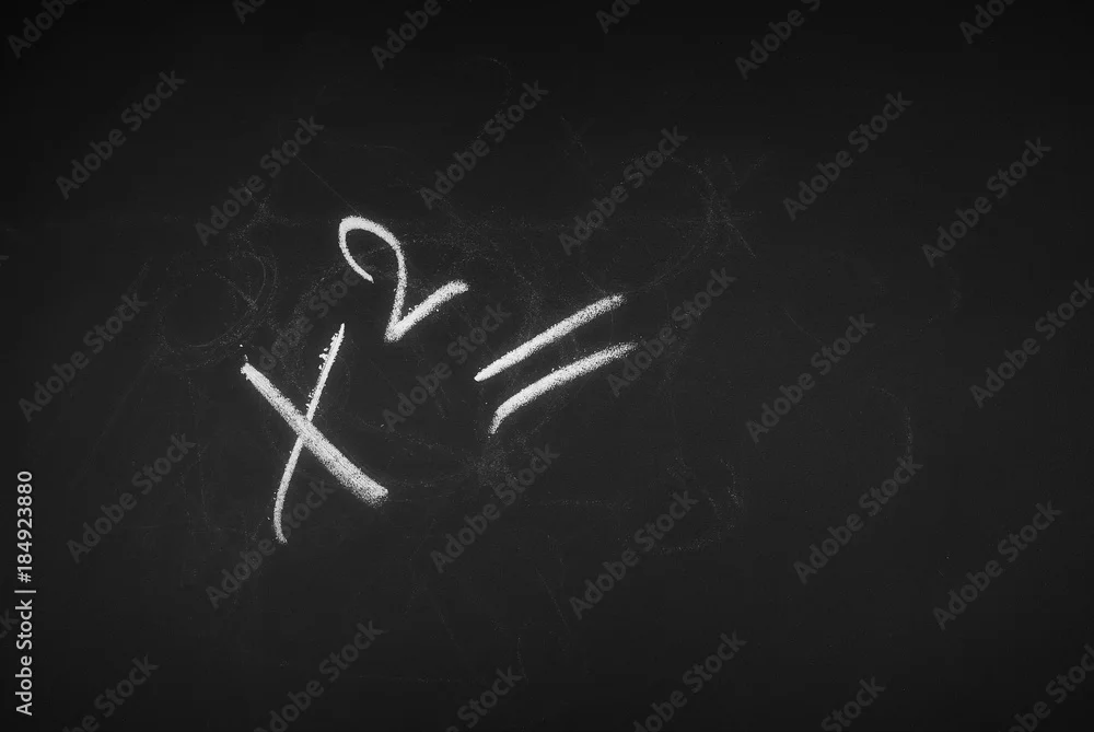 Mathematical equation, formula symbol, sign on chalkboard, blackboard texture