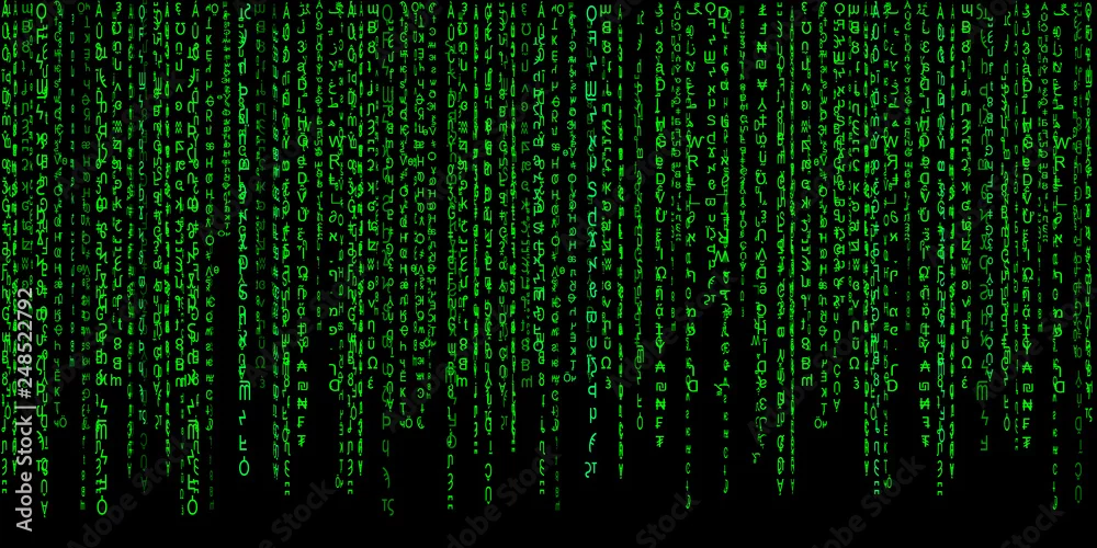Matrix green on black background.Computer virus and hacker screen wallpaper