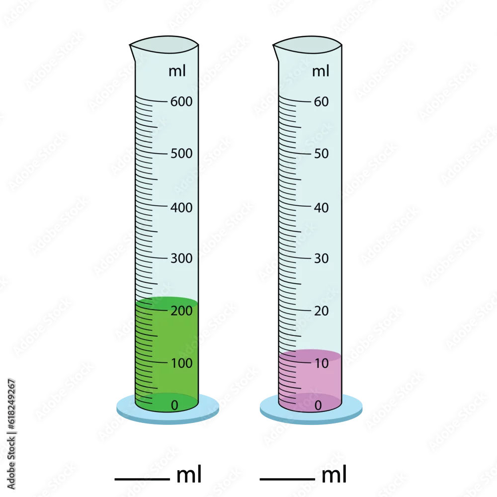 Measuring cylinder. Vector illustration. Cylinder graduated tube vector glass chemistry measuring volume. Measuring the volume of the beaker. Measuring activity. Graduated Cylinder