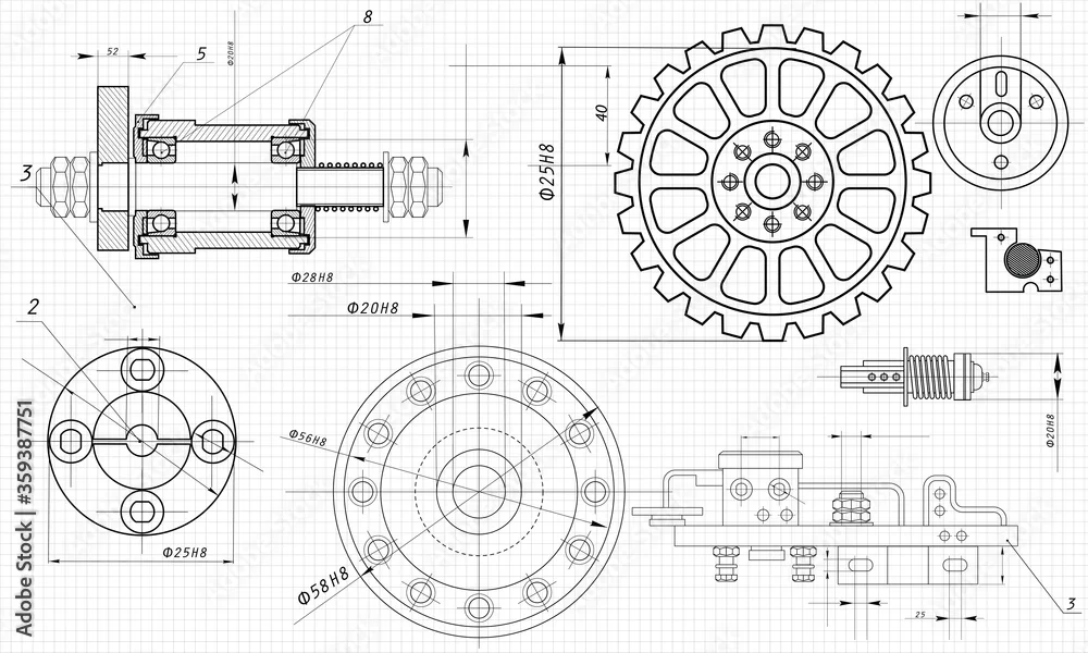 Mechanical Engineering drawing. Engineering Drawing Background. Vector Illustration.