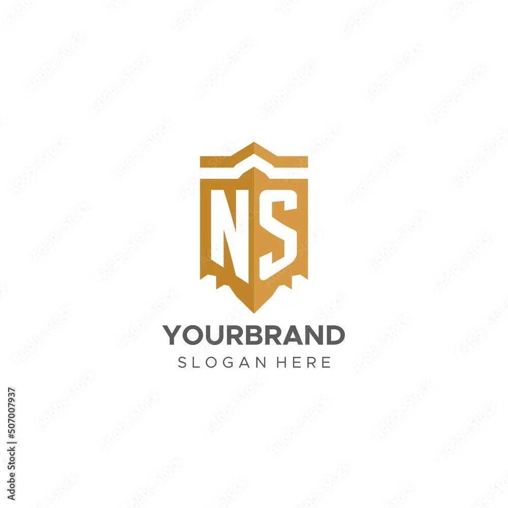 Monogram NS logo with shield geometric shape, elegant luxury initial logo design
