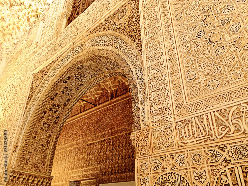 Moorish art and architecture inside the Alhambra, Granada (Spain
