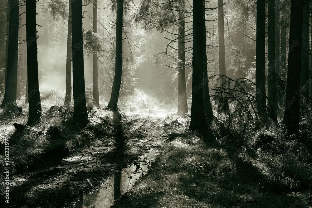 morning light in spruce forest