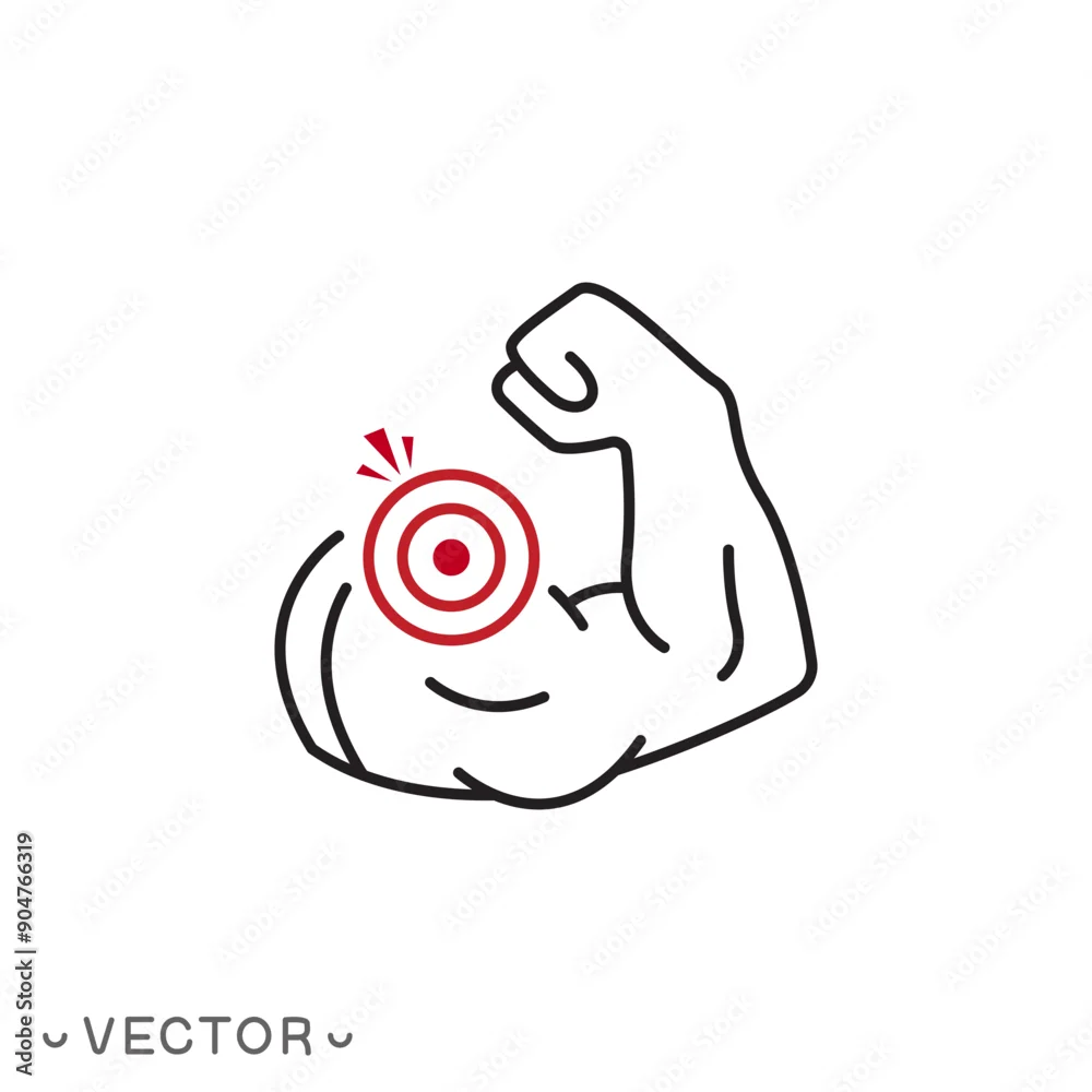 muscle pain icon, spasm of smooth muscles, arm strong, thin line symbol isolated on white background, editable stroke eps 10 vector illustration