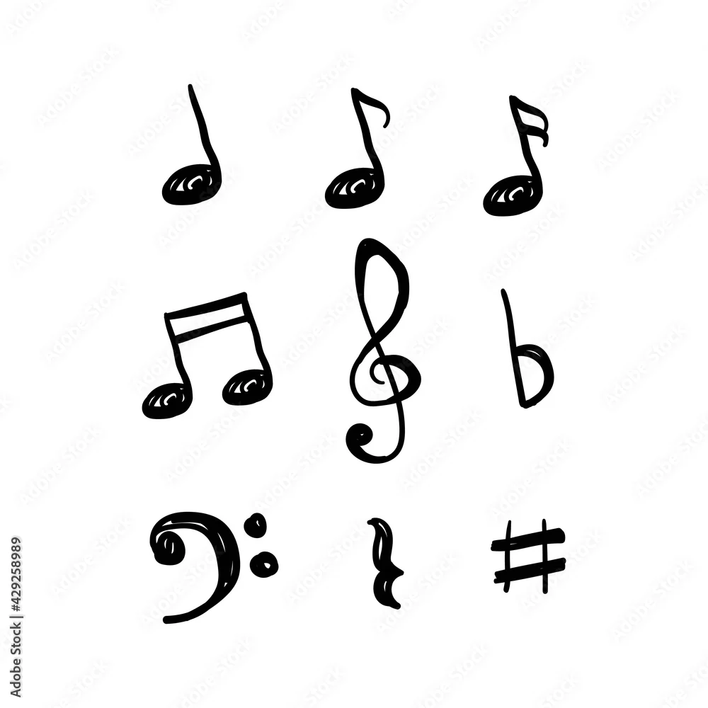 Music notes hand drawn vector design isolated on white background. Set of music notes icon design in doodle style