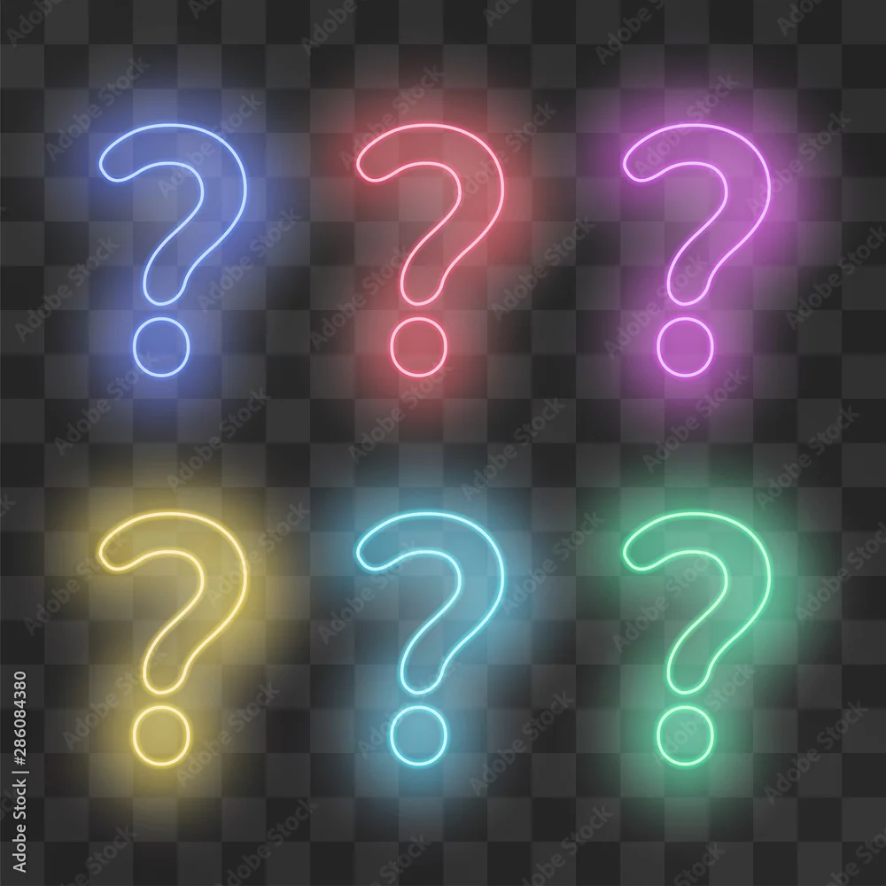 Neon light question sign set isolated on white. Quiz or question and answer theme poster or banner, helpful faq, information board. Q and A icon. Demanded ...