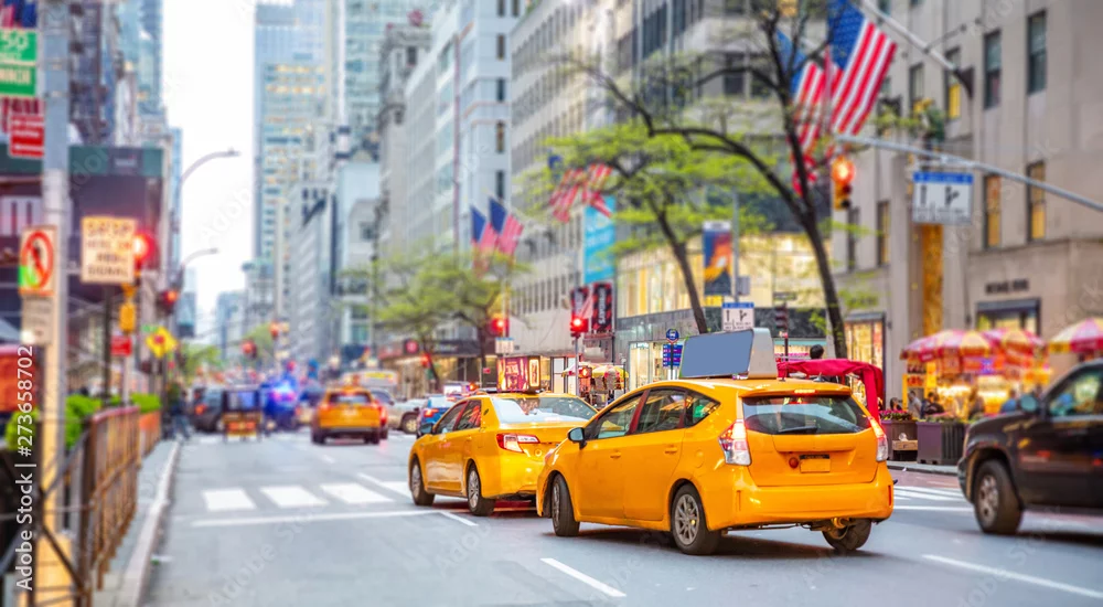 New York, streets. High buildings, cars and cabs