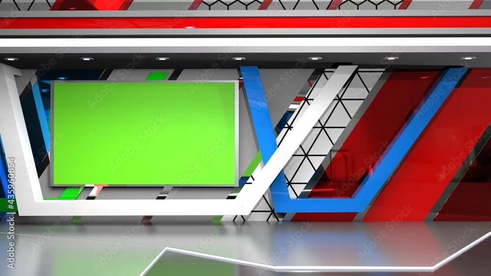 News Studio, Backdrop For TV Shows .TV On Wall.3D Virtual News Studio Background, 3d illustration