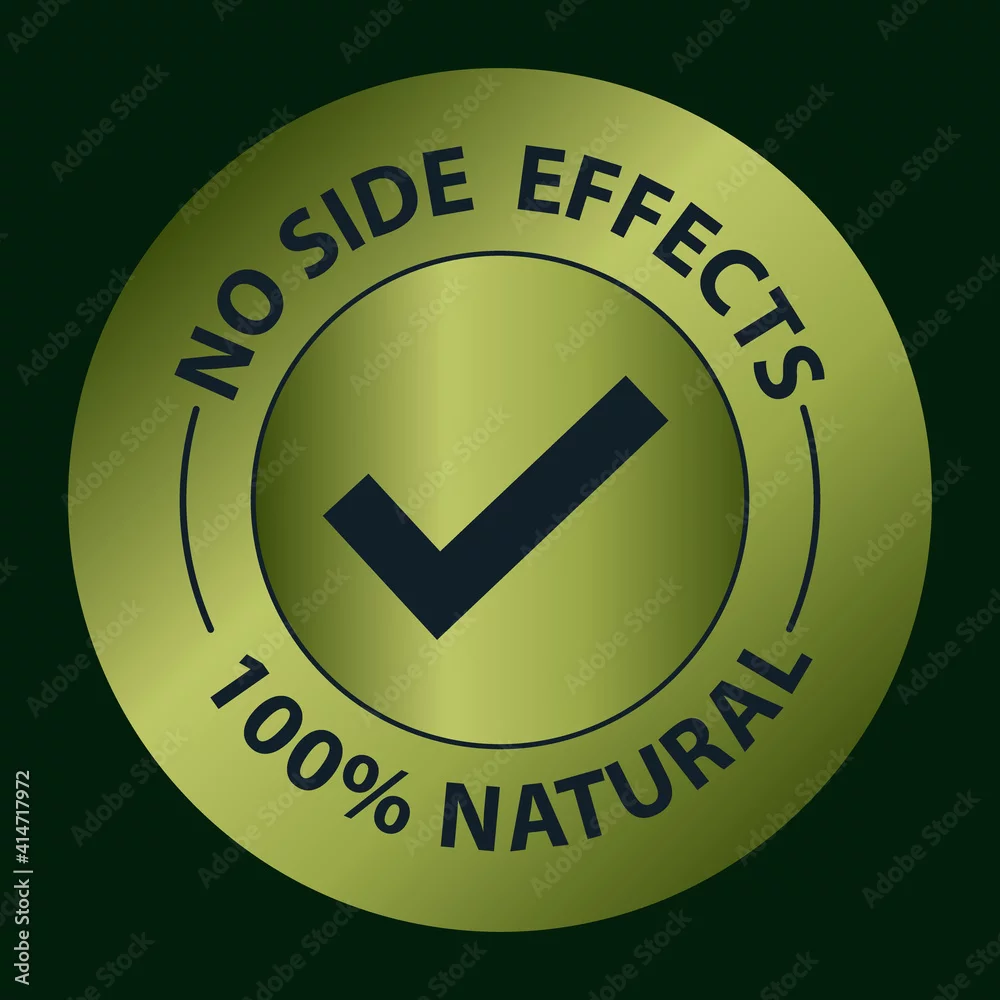 'no side effects, 100% natural' icon organic product abstract, vector icon with tick mark. metallic green color