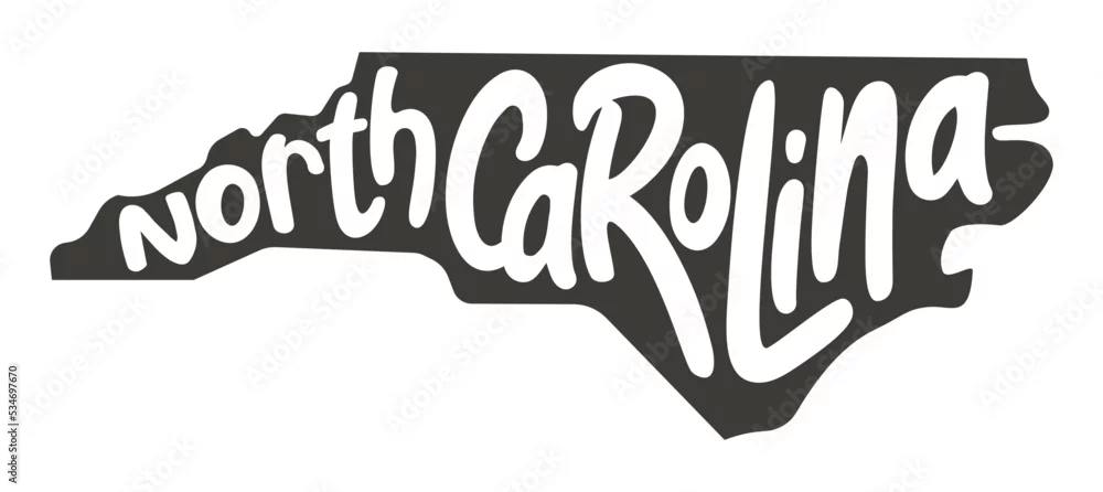 North Carolina. Vector silhouette state. Carolina map with text script. North carolina shape state map for poster, t-shirt, tee, souvenir. Vector outline ...