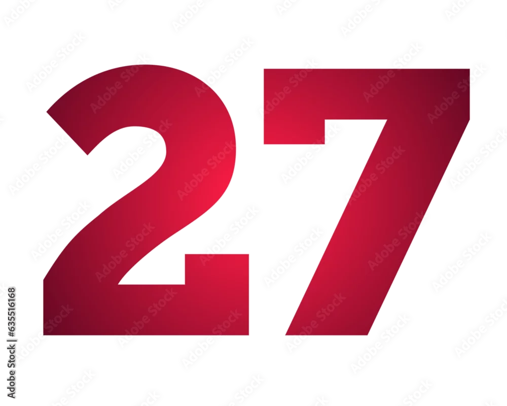 number 27 icon pink color sign symbol numbers for design elements isolated on transparent background