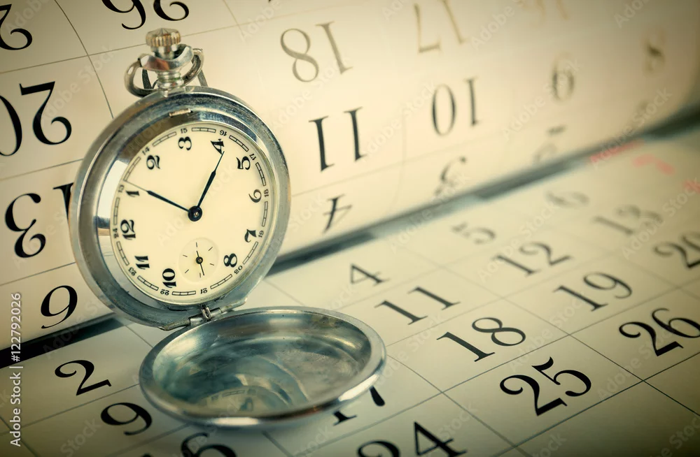 Old pocket watch and calendar