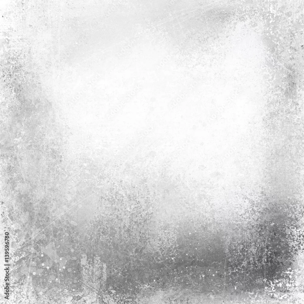 old white paper background with distressed vintage texture, faded peeling gray paint on old tin or silver metal design