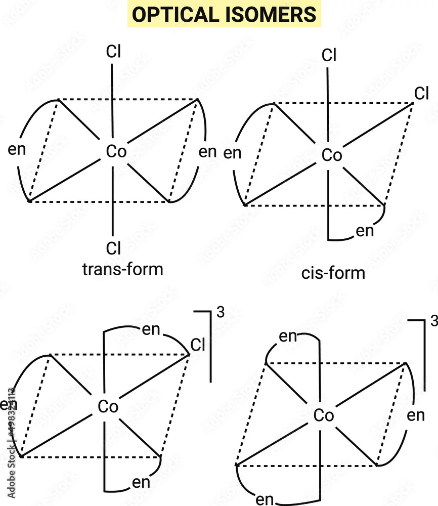 Optical isomers: two compounds which contain the same number and kinds of atoms, and bonds