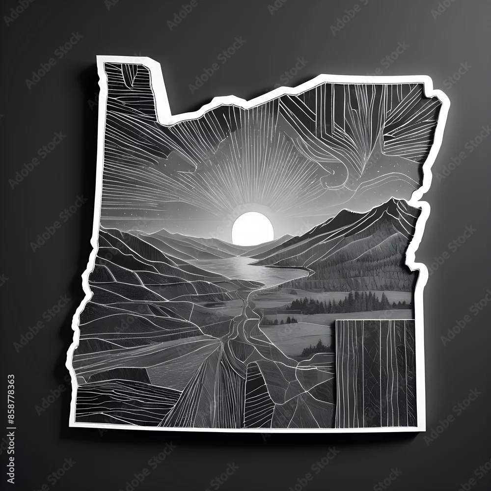 Oregon state outline, illustration of the map of Oregon - American state