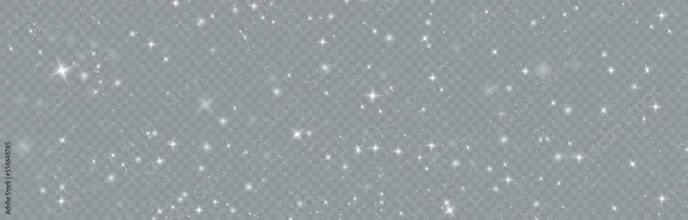 Particles of white magic dust. Shining light particles.Christmas glitter particles. Light effect on a transparent background