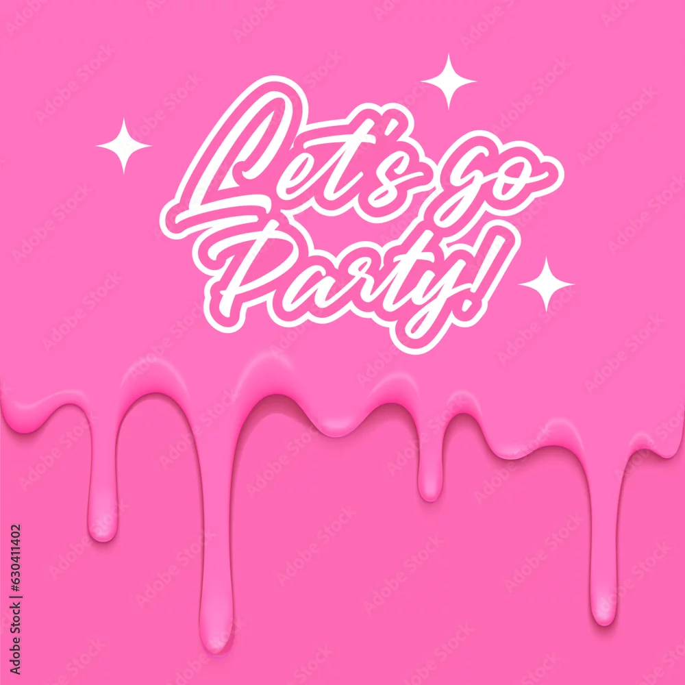 Party Poster in Pinkcore Style. Vector Illustration with Dripping Pink Glaze. Abstract Plastic Background in Trendy Doll Aesthetic