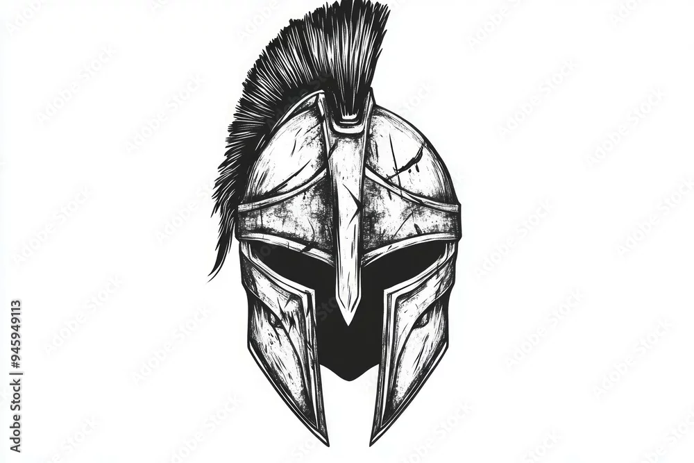 Pencil drawing spartan helmet on white background black and white. Spartan helmet tattoo design