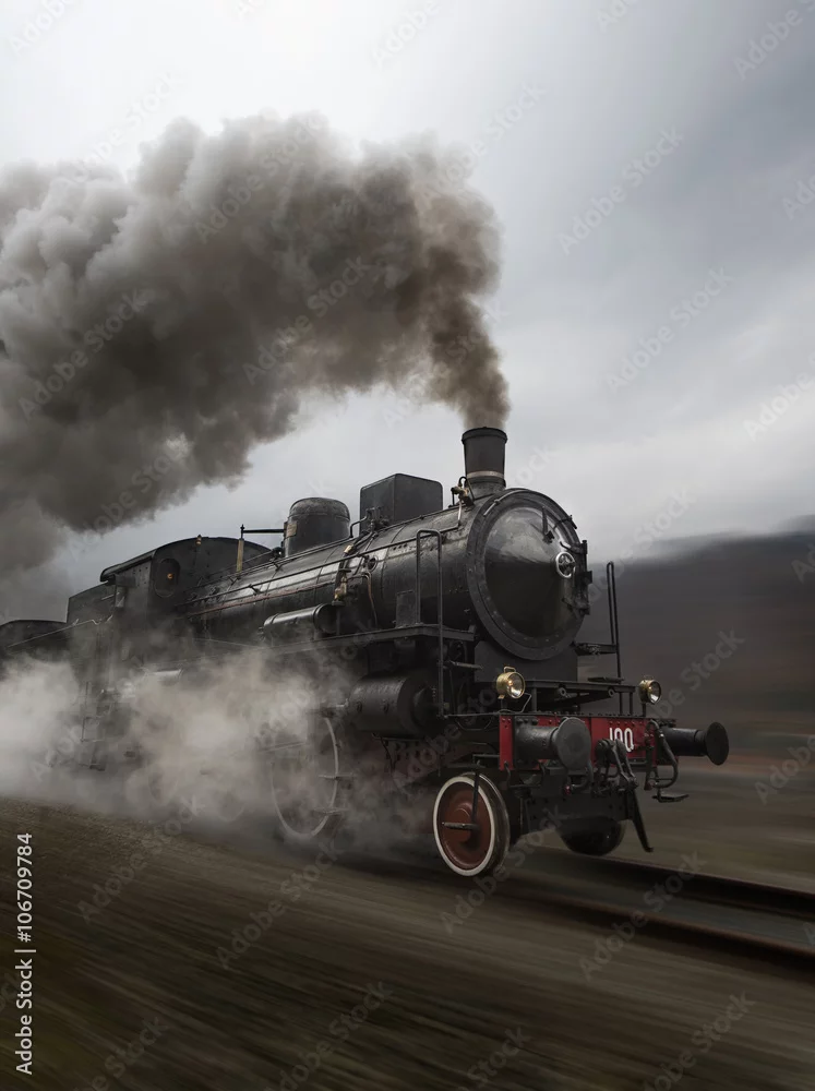 Vintage black steam train