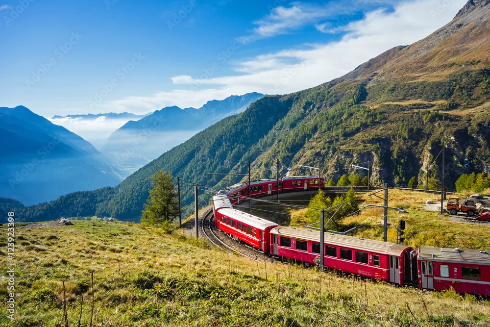 Graubünden, Schweiz. Mit der Bahn von der Alp Grüm durch das Puschlav nach Tirano