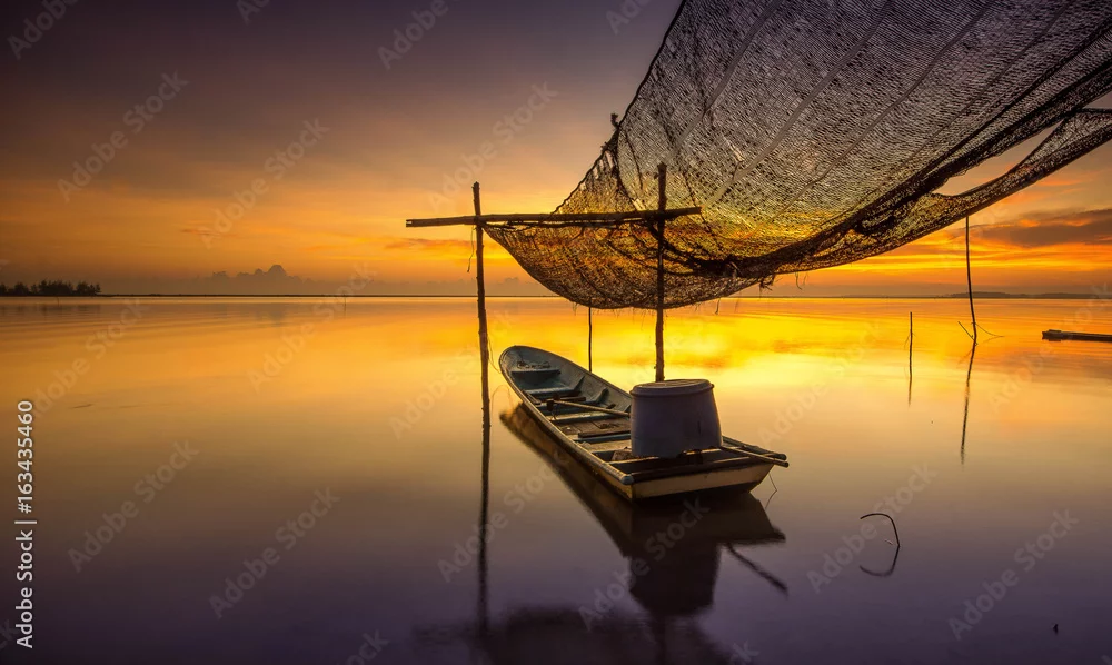 the boat during wonderful sunrise at jubakar,kelantan malaysia on 4 nov. 2016