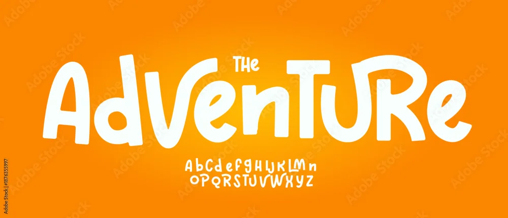 Adventure font modern bouncy typeset, lively friendly alphabet. Playful cheerful letters in Los Muertos Mexican style for menus, labels, signage, ads, crafts and comic book. Vector typographic design