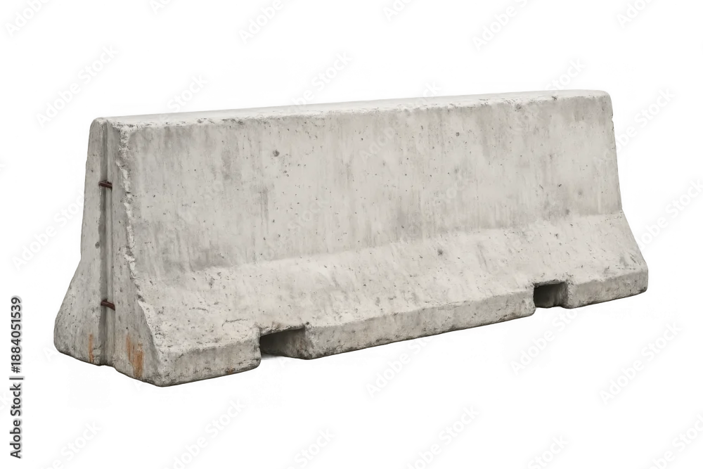 Concrete jersey barrier block forming protection and safety on a road with transparent background