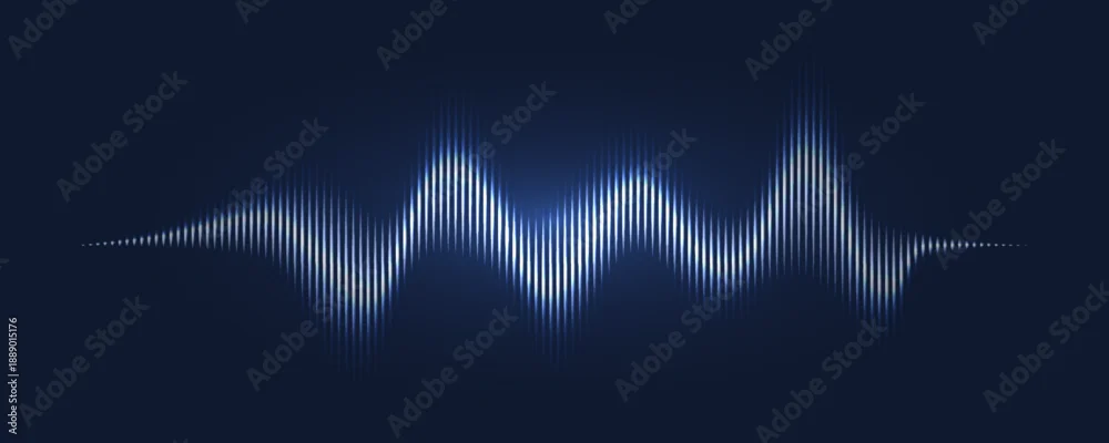 Sound wave line background, abstract blue equalizer with light glow effect, voice audio assistant, energy pulse beat. Vector soundwave illustration.