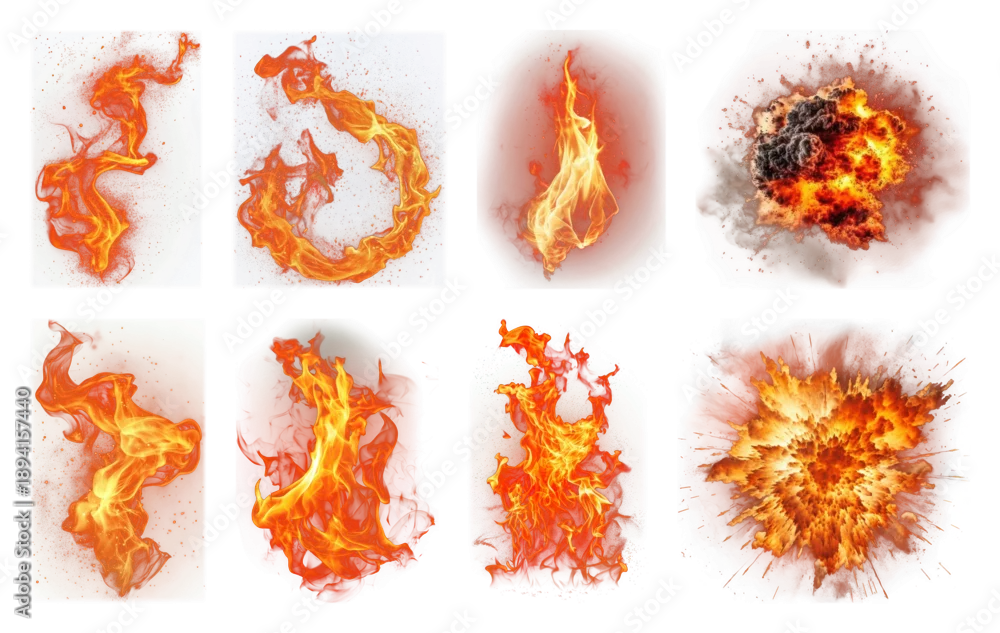 PNG Dynamic fiery explosion elements, transparent background