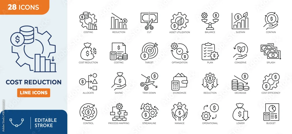 Cost Reduction line editable icon set. Editable stroke. Vector illustration
