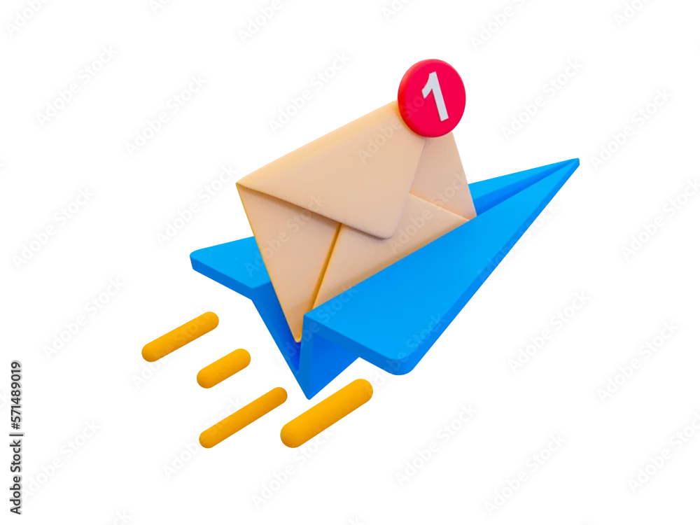3d minimal online message sending. Online chatting icon. quick and fast online communication. Paper rocket with a envelop icon. 3d illustration.