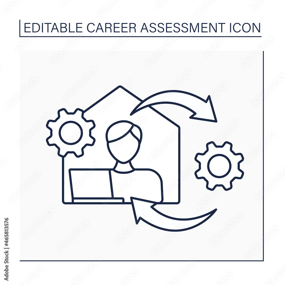 Physical work environment line icon. Layout and location of workplace. Facilities in workplace used while working.Career assessment concept. Isolated vector ...