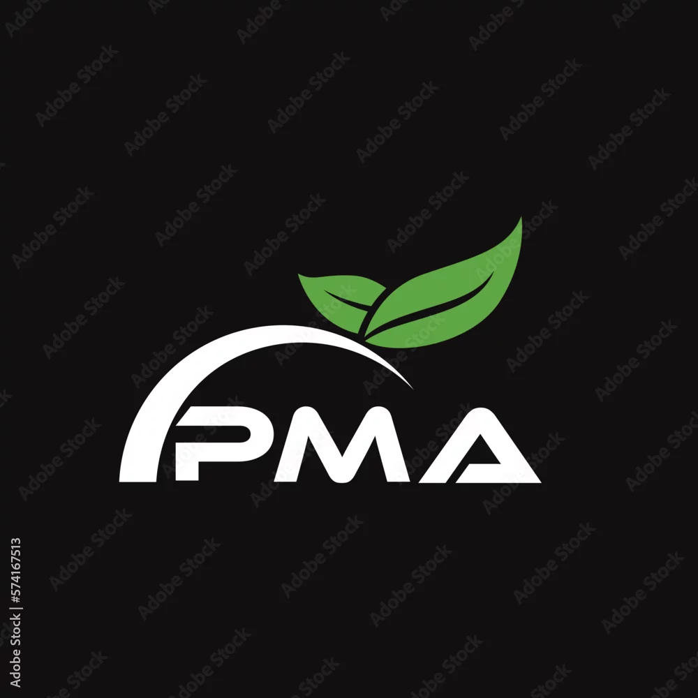 PMA letter nature logo design on black background. PMA creative initials letter leaf logo concept. PMA letter design.