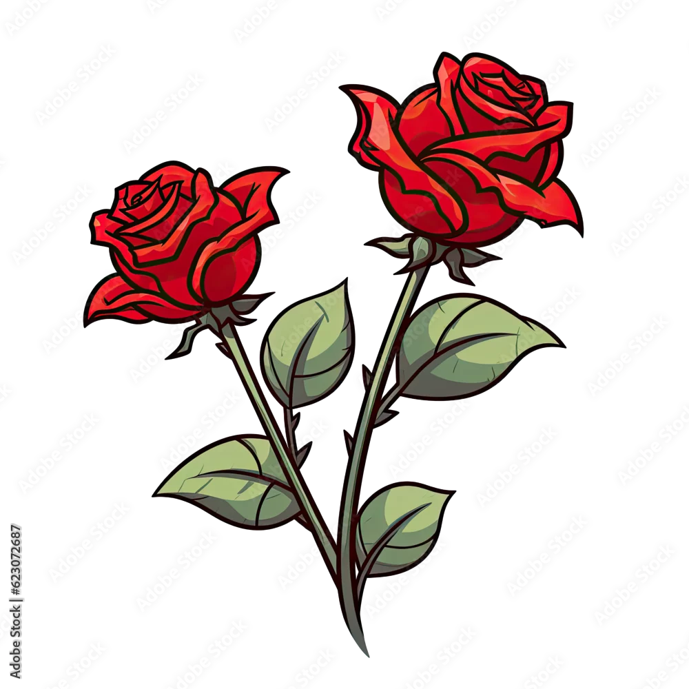 PNG rose in cartoon style, isolated transparent background, generative ai
