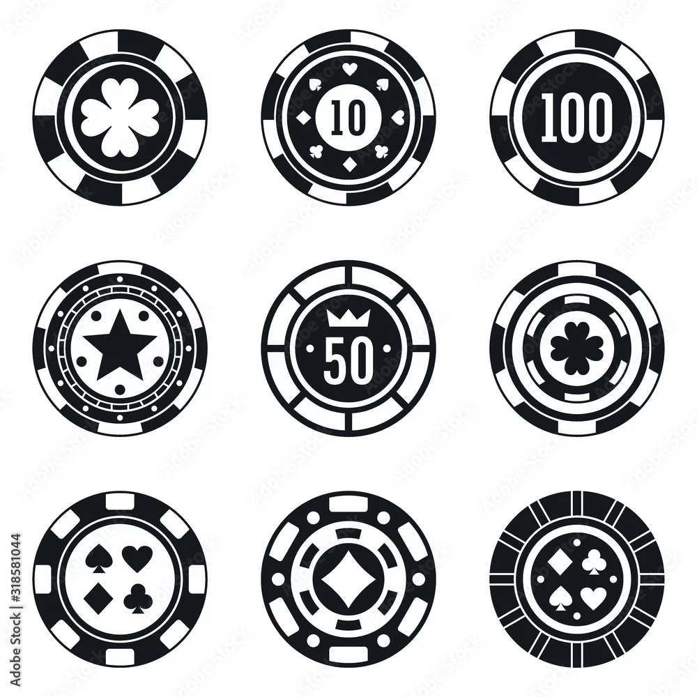 Poker casino chips icons set. Simple set of poker casino chips vector icons for web design on white background