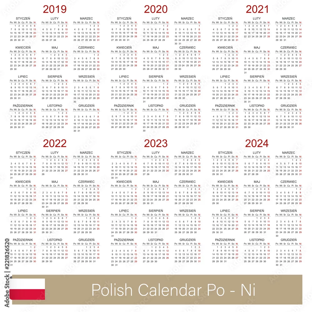 Polish Calendar 2019-2024 / Polish calendar 2019 - 2024, week starts on Monday, simple calendar template for 2019, 2020, 2021, 2022, 2023 and 2024, printable ...