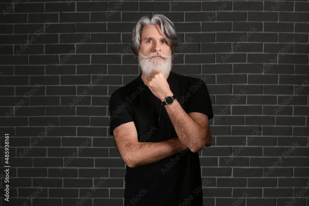 Portrait of handsome mature bearded man on dark background